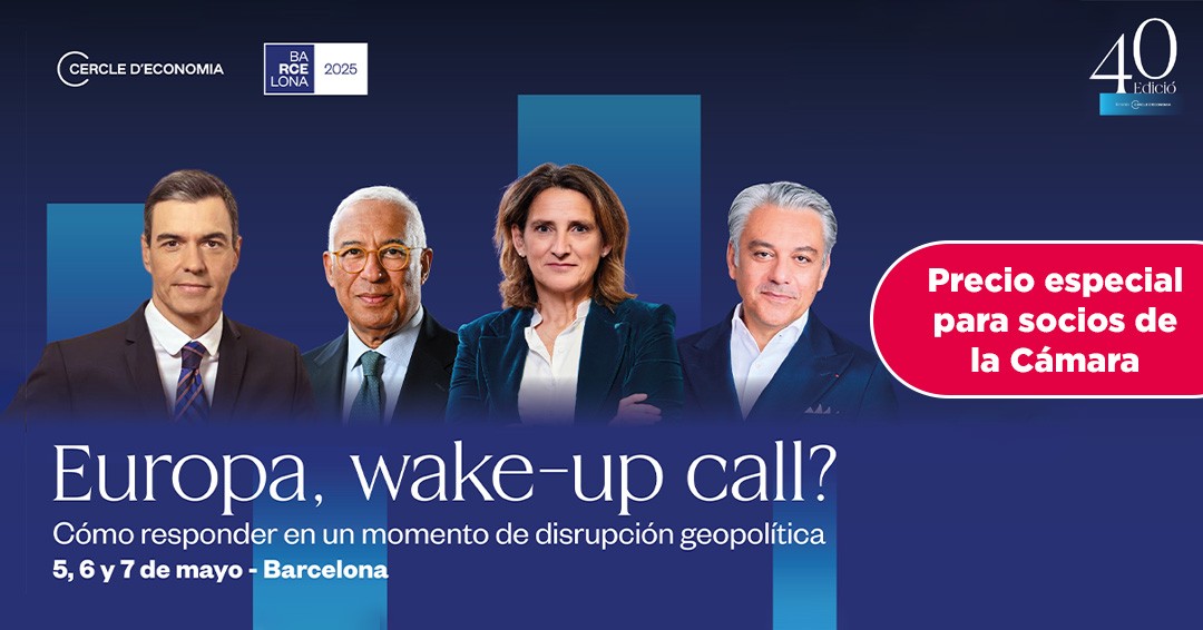 Desde la Cámara Francesa de Comercio e Industria de Barcelona, nos complace anunciar un acuerdo de colaboración con el Cercle d’Economia para facilitar la participación de nuestros socios en uno de los eventos más relevantes del año: la 40ª Reunión Anual del Cercle d’Economia, que tendrá lugar los días 5, 6 y 7 de mayo en el Palau de Congressos de Catalunya (Barcelona), bajo el título: “Europa, wake-up call? Cómo responder en un momento de disrupción geopolítica”.