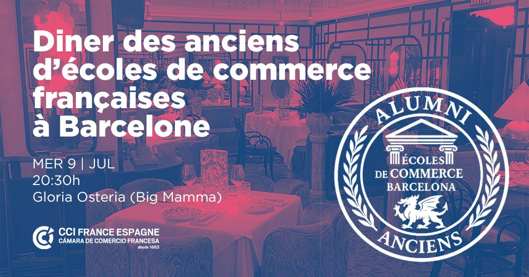 La Chambre de Commerce Française de Barcelone a le plaisir de vous convier à un dîner convivial spécialement dédié aux anciens élèves des écoles de commerce.